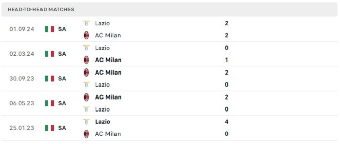 Lịch sử đối đầu của AC Milan vs Lazio